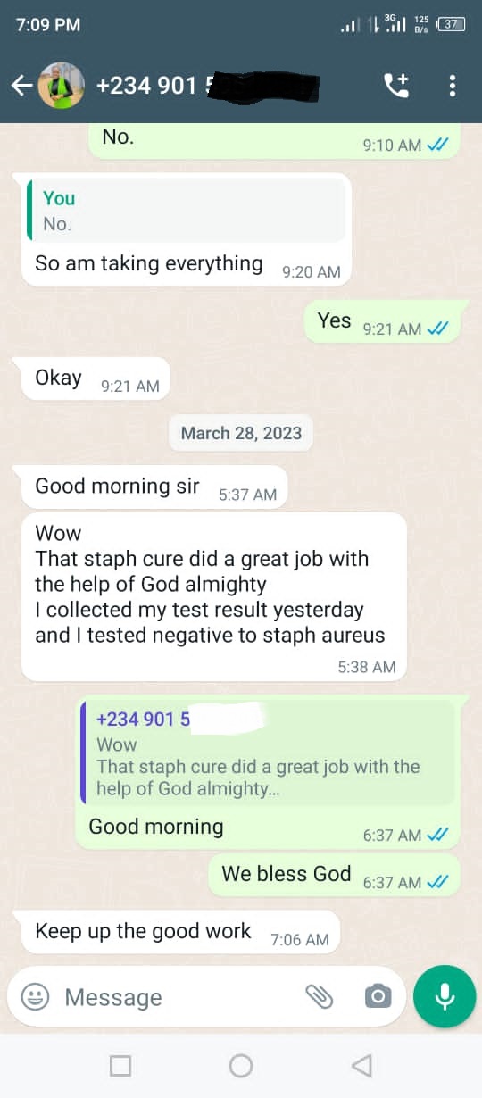 I explained how the staph infection have affected my marriage, detestroyed our immune system, affected our health and also affecting my fertility.