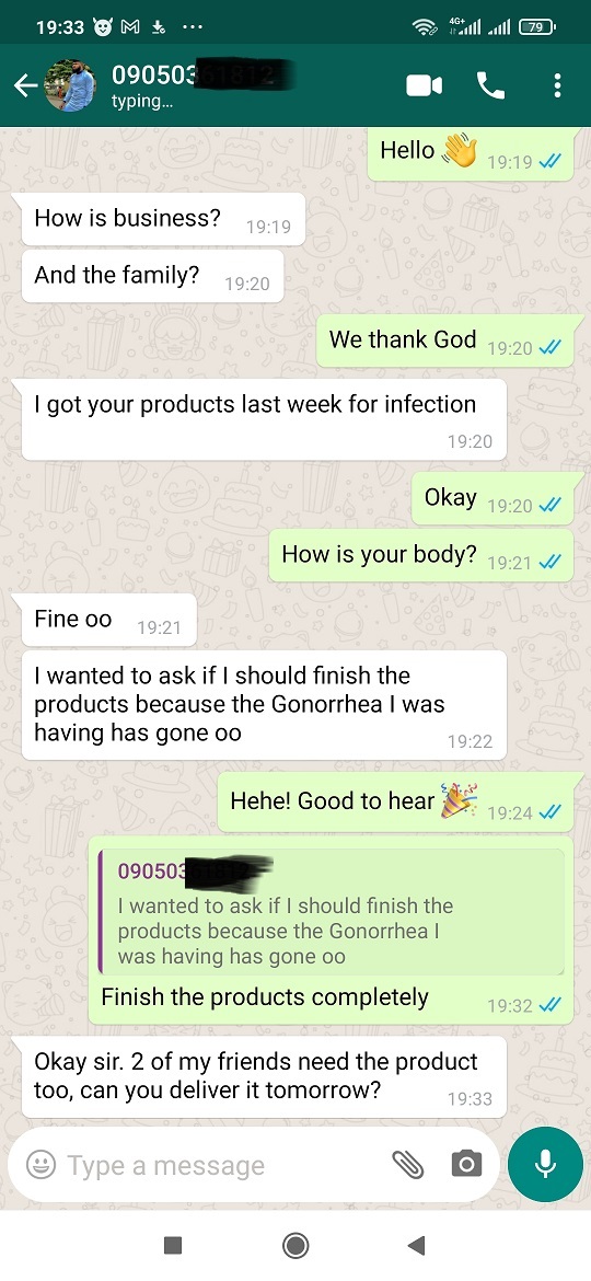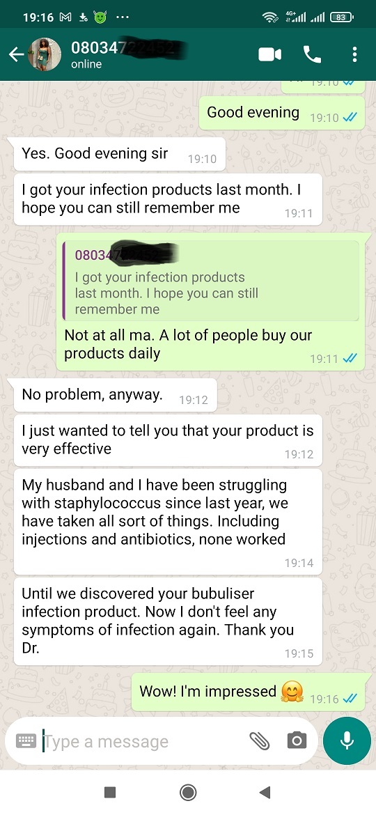 I quickly begged her to help me get the same herbal powder so I and my husband could use it as well to get rid of infections before it became something else.